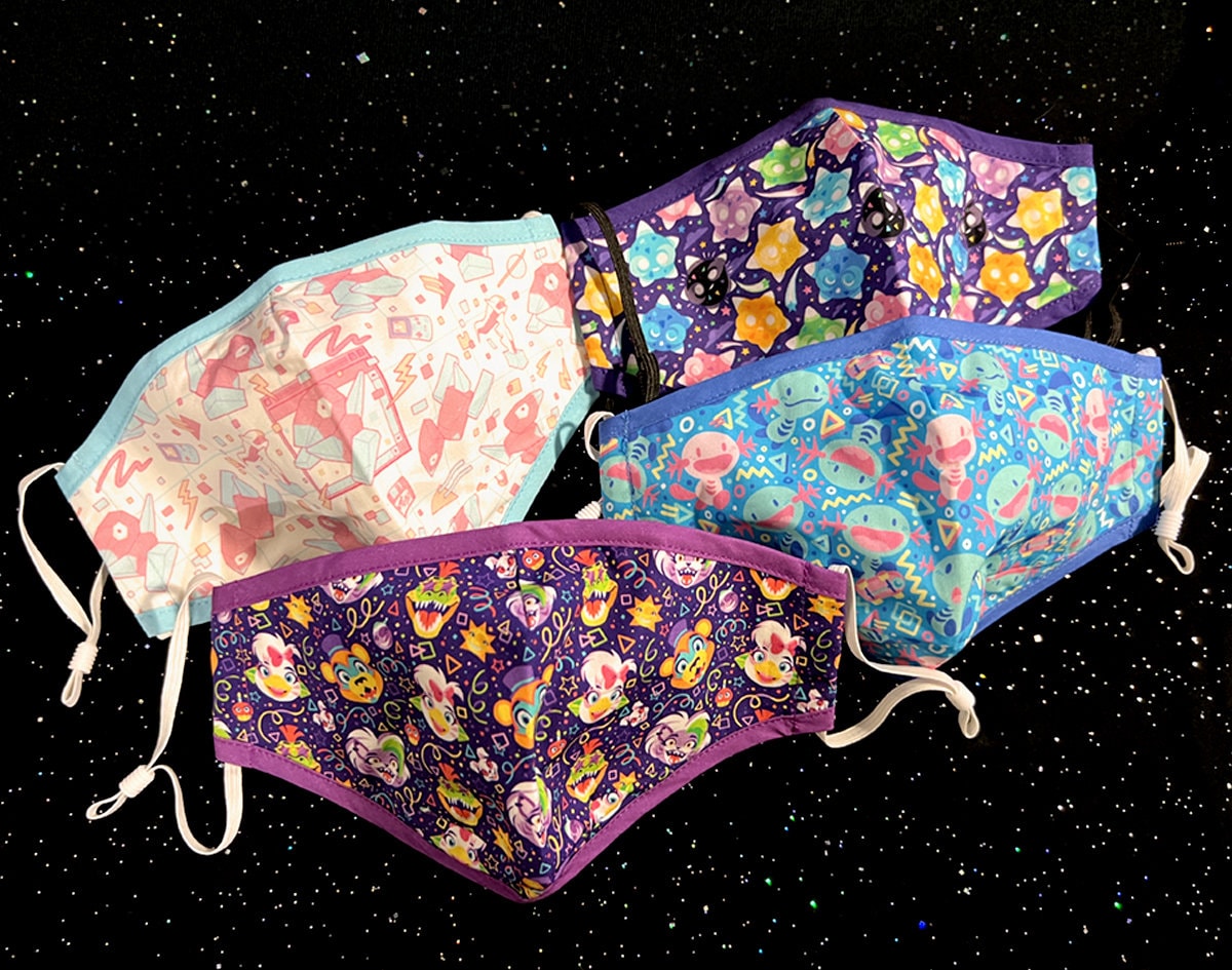 A collection of vibrant, highly-detailed, face masks perfect for any workspace!